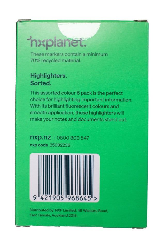 Product form NXP Highlighter Recycled Chisel Tip Assorted Colours Pack 6 $23.58Excl. GST Brilliant fluorescent colours Smooth application Made from 70% recycled materials Stubby flat chisel tip Assorted set of 6 colours Read more Read more SKU: 25082236 Quantity Add to cart This item is a recurring or deferred purchase. By continuing, I agree to the cancellation policy and authorize you to charge my payment method at the prices, frequency and dates listed on this page until my order is fulfilled or I cancel, if permitted. Share with your friends Share WhatsApp Deel Tweet Pin it Messenger Email