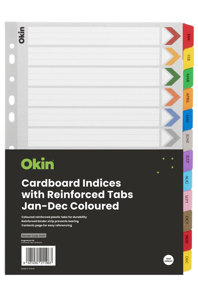 Product form Okin Indices Cardboard Reinforced Tabs Jan-Dec A4 Coloured $3.78Excl. GST Reinforced plastic tabs for heavy-duty use Punched for 2, 3, and 4 ring binders 20 coloured tabs printed Jan-Dec A4... Read more Read more SKU: 86635139 Quantity Add to cart This item is a recurring or deferred purchase. By continuing, I agree to the cancellation policy and authorize you to charge my payment method at the prices, frequency and dates listed on this page until my order is fulfilled or I cancel, if permitted. Share with your friends Share WhatsApp Deel Tweet Pin it Messenger Email
