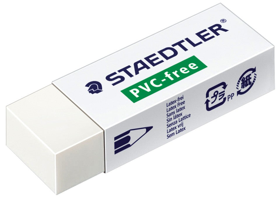 Product form Staedtler Eraser PVC Free 525 B30 Medium $1.02Excl. GST Minimal crumbling Protective cellophane wrapper with practical tear-and-open strip Sliding sleeve for convenient handling PVC and as such phthalate and... Read more Read more SKU: 18932980 Quantity Add to cart This item is a recurring or deferred purchase. By continuing, I agree to the cancellation policy and authorize you to charge my payment method at the prices, frequency and dates listed on this page until my order is fulfilled or I cancel, if permitted. Share with your friends Share WhatsApp Deel Tweet Pin it Messenger Email